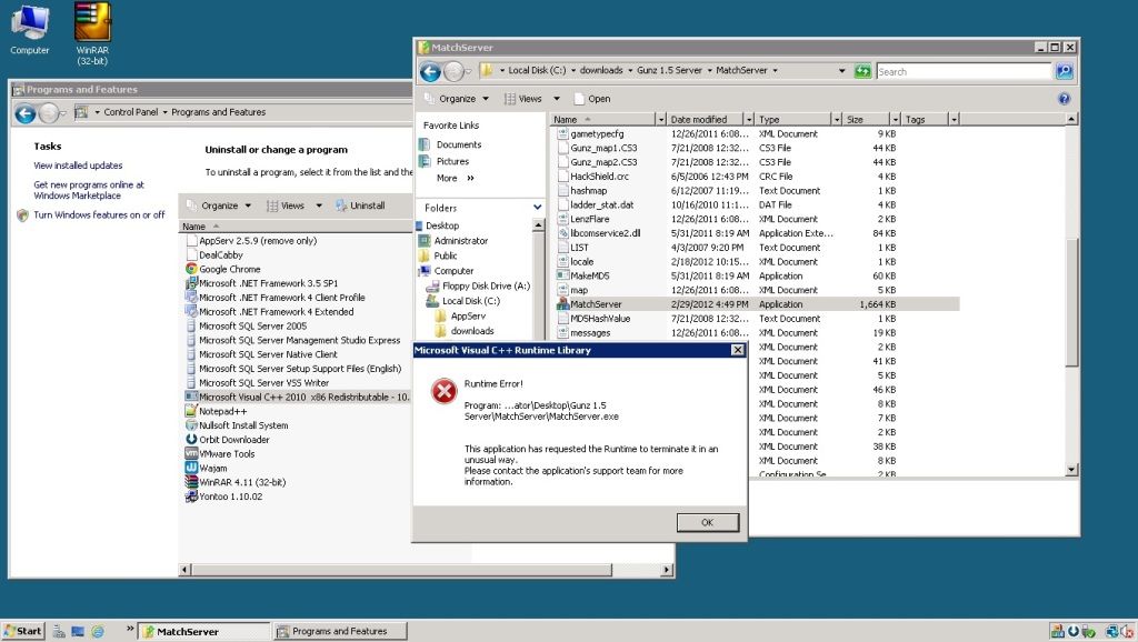 when using windowns server 2003 It works fine until I revert to the windowns server 2008