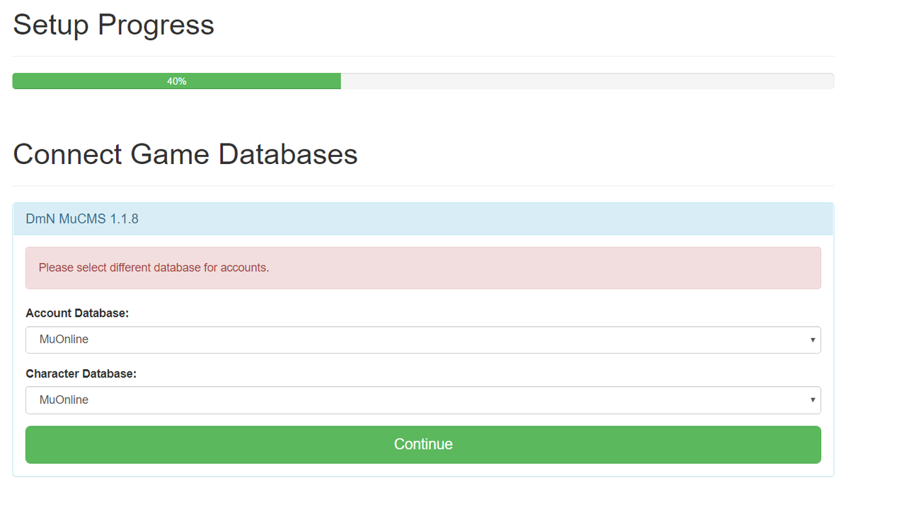 And MuOnline is the database of the accounts and characters, but it's not going through.