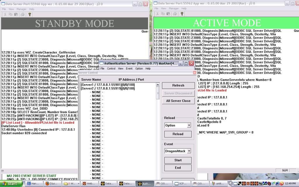 Abut configure on xp and sql 2000, i can say that i have a friend who configured this files on that OS and he dont have problems with GS crash, and he didint had problems with the dataserver crash for some weeks, but now he have that problem to.