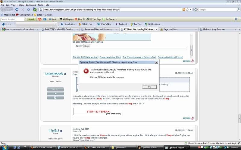 With that being said, I don't think it relates to bad ram either. Did this randomly start occurring for you? If so, do some virus scans ASAP and a Windows update. I recommend downloading a trial of Kaspersky and doing a system scan. There *WILL* be false positives related to Priston Tale files -- that I can guarantee. They're commonly seen with NOD32 too and Avira detects some false positives as well. Still, don't let that make you think that all PT-related detections are false positives.