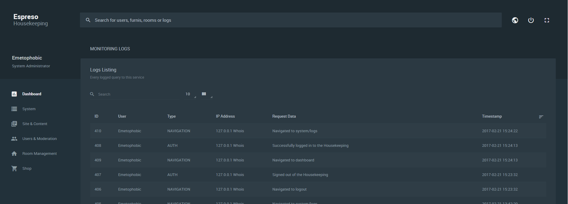 But i prefer doing the update be able from the Housekeeping.
