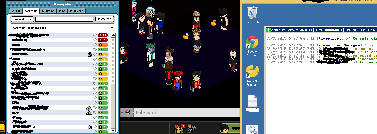 The emulator only counts the users in the room that doesn't are afk. The emulator gives good statistics about the users, and make a PGM of the RAM. We working to make a better RAM management. And we will make a statistics system. Also adding socket.io for a RCON system.