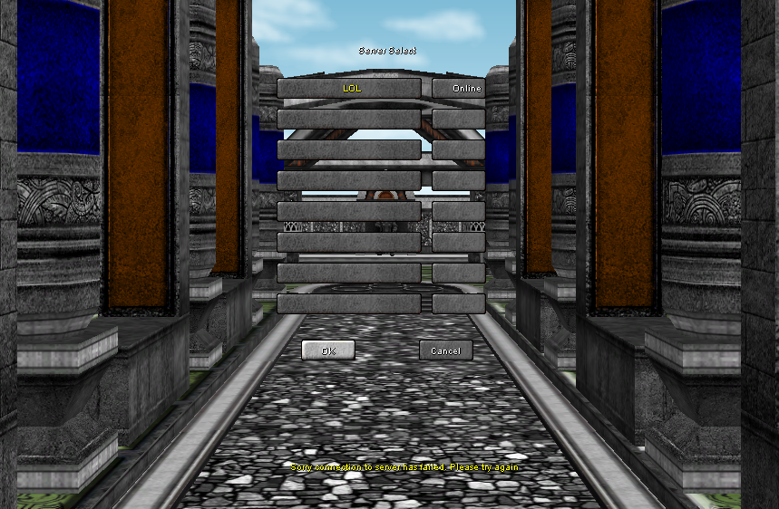 but the problem is when i login in the client and select the server, nothing happen. it just stop in select server, also no text display.