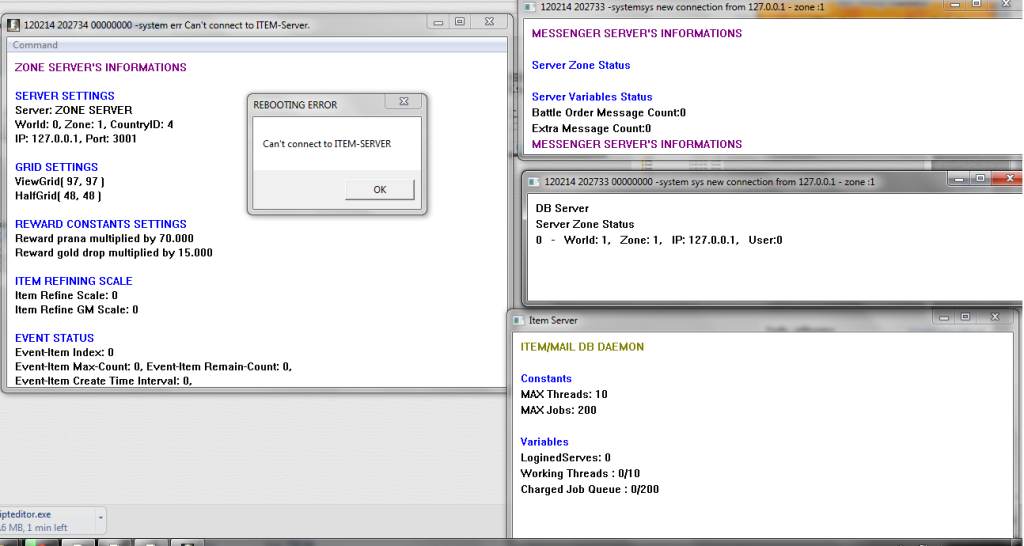 when i run DBSRV > MSGSRV > ITEMSERVER > ZONE 1 server and will display this.. cannot connect to item server..