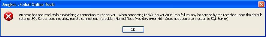 Looks like a pretty clear error to me. Either you have the wrong server ip, or if you use mssql 2005 you need to enable remote connections in the surface tool like it tells you.