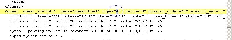 First go to Quest.scp and search for "591" (BSLV UP Special Training, #1) and change type 0 to 4
