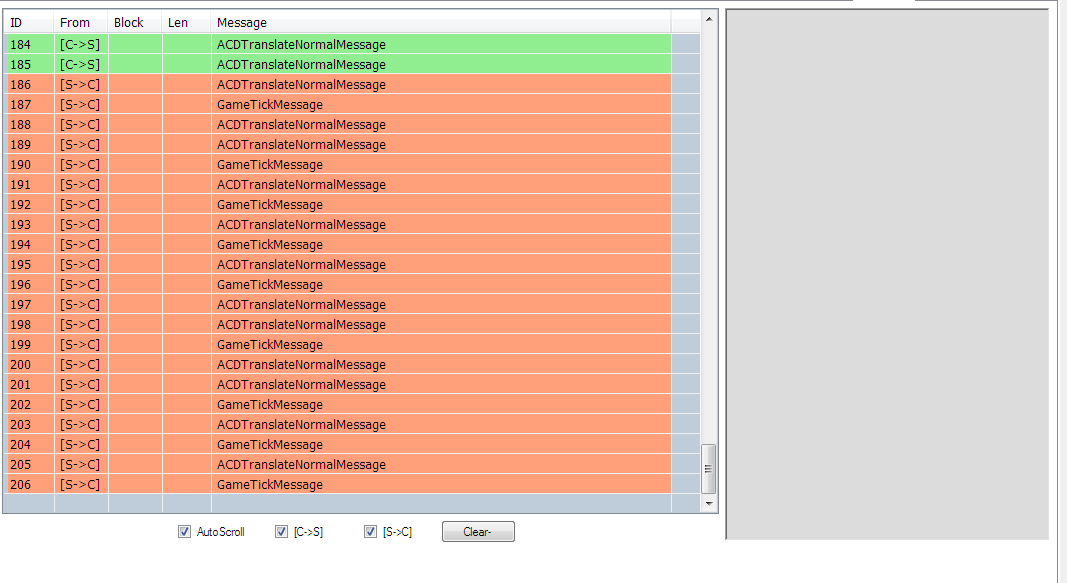 if u click one message, a description will appear in the grey textbox, showing the hex string and all the fields used in that message, like positions, names, ids, etc. I think that's the best way to do it, so u can see the actual flow, very quickly and if u want details, just "click" the message :)