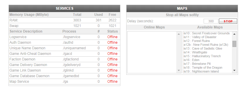 My server page looks like this. Is there a command or something Im missing to start everything?