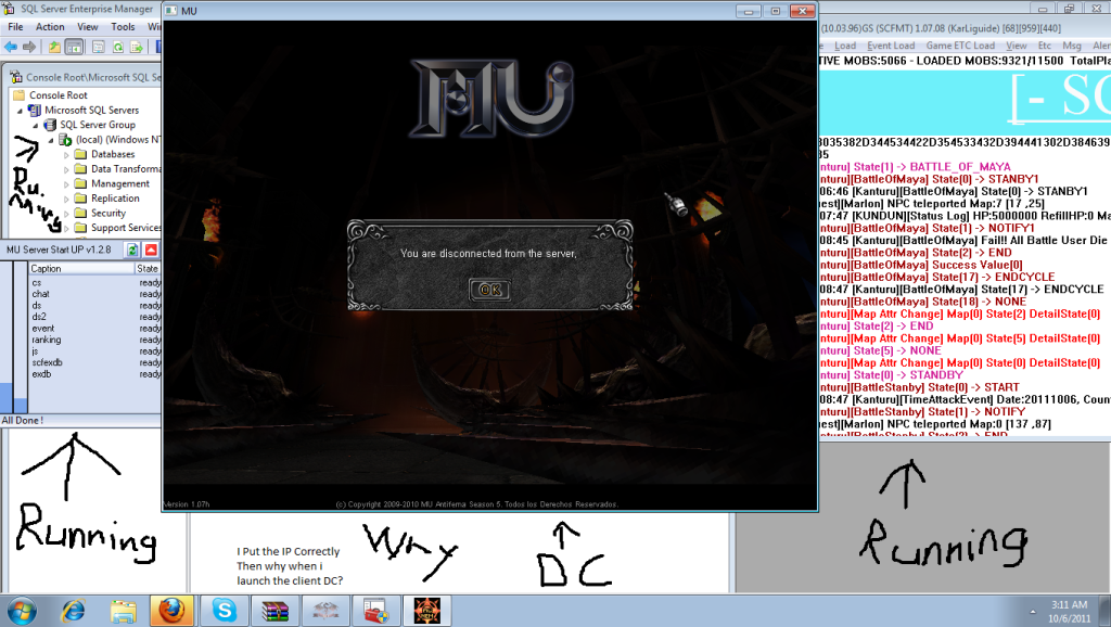 Why?? I Put my ip correcly I Restore Database correctly i Run The Server Correctly i RUn the GC correctly=why its DC?