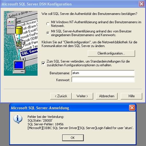 That error comes because In your SQL Server 2008 R2 or 2003 you didn't created a user : atum. with password lets say: callweb (usual one).