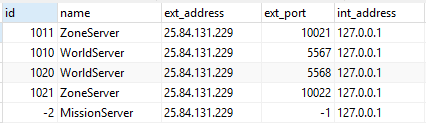 All my setup is configure to the hamachi ip and my db too, i have patch the worldserver and the loginserver with my hamachi ip too..