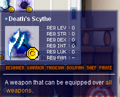 and so on. The only thing you can do is remove the nodes that is not inside v62. If you need help with exactly what nodes they are all you need to do is look at the weapons inside your character.wz Look at the ids, they go like 130xxx, 131xxx, all you look at is the second and third number. 30, 31. Once you figure out what weapons are inside your server, remove the ones that are not. Save, export your private server xml, and start enjoying your Death Scythe.
