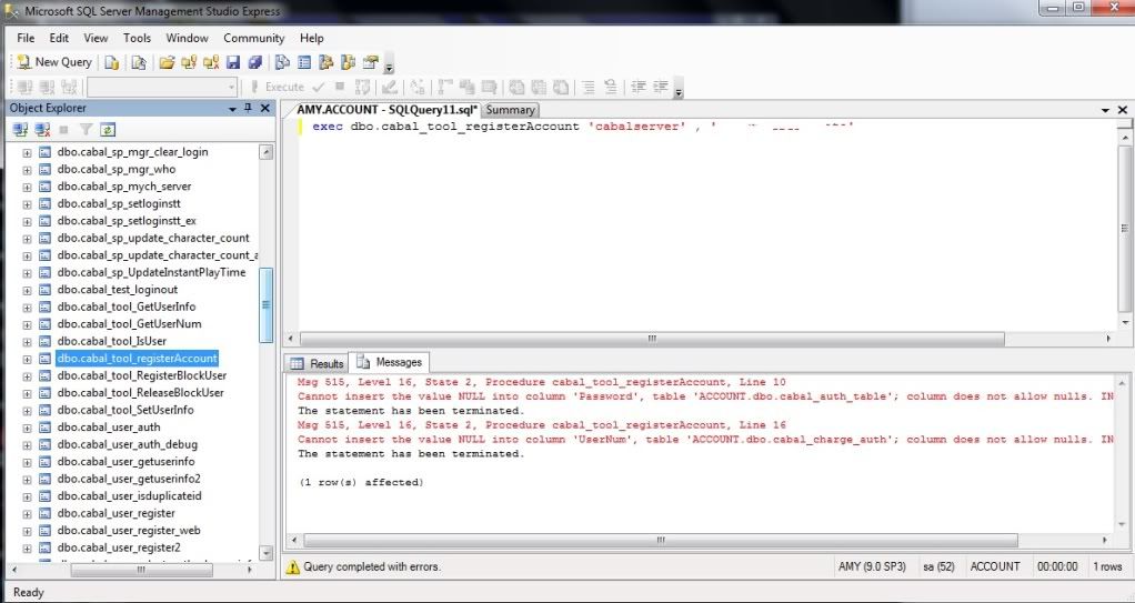 since i cannot find this dbo.cabal_tool_accountregister thing, i change it to dbo.cabal_tool_registerAccount which i found from the mssql>databases>ACCOUNT> Programmability >StoredProcedure.