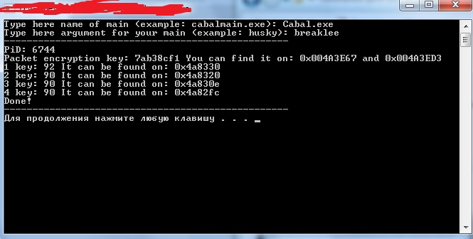 Can someone help me find the xor keys for that cabal main ?