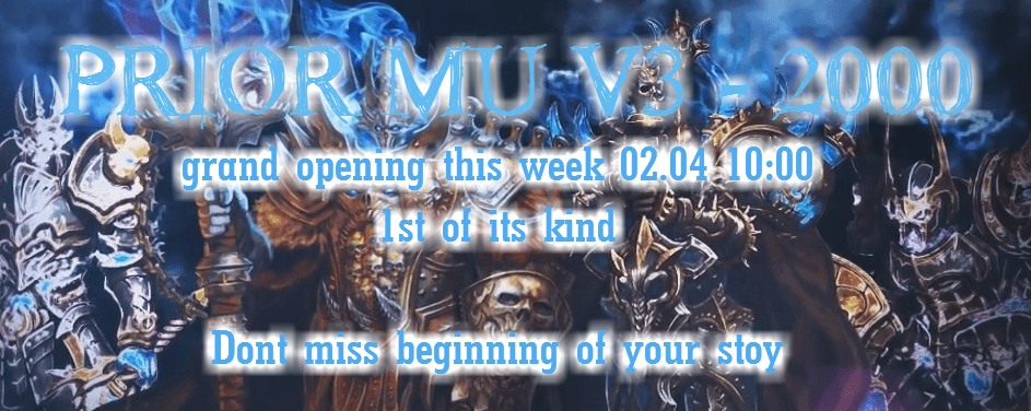 Prior Mu Open their 2nd realm with 2000 experience and reset system. This will be 1st such kind of server what have been launched under Prior Mu name. Everything is planned for several month. Files been running for couple week with several people testings, So there wont be Beta periods this time. All events are taken from Prior Mu V2 but they are adapted for high stat character, same as Character skill calculations so there is balance during your journey.