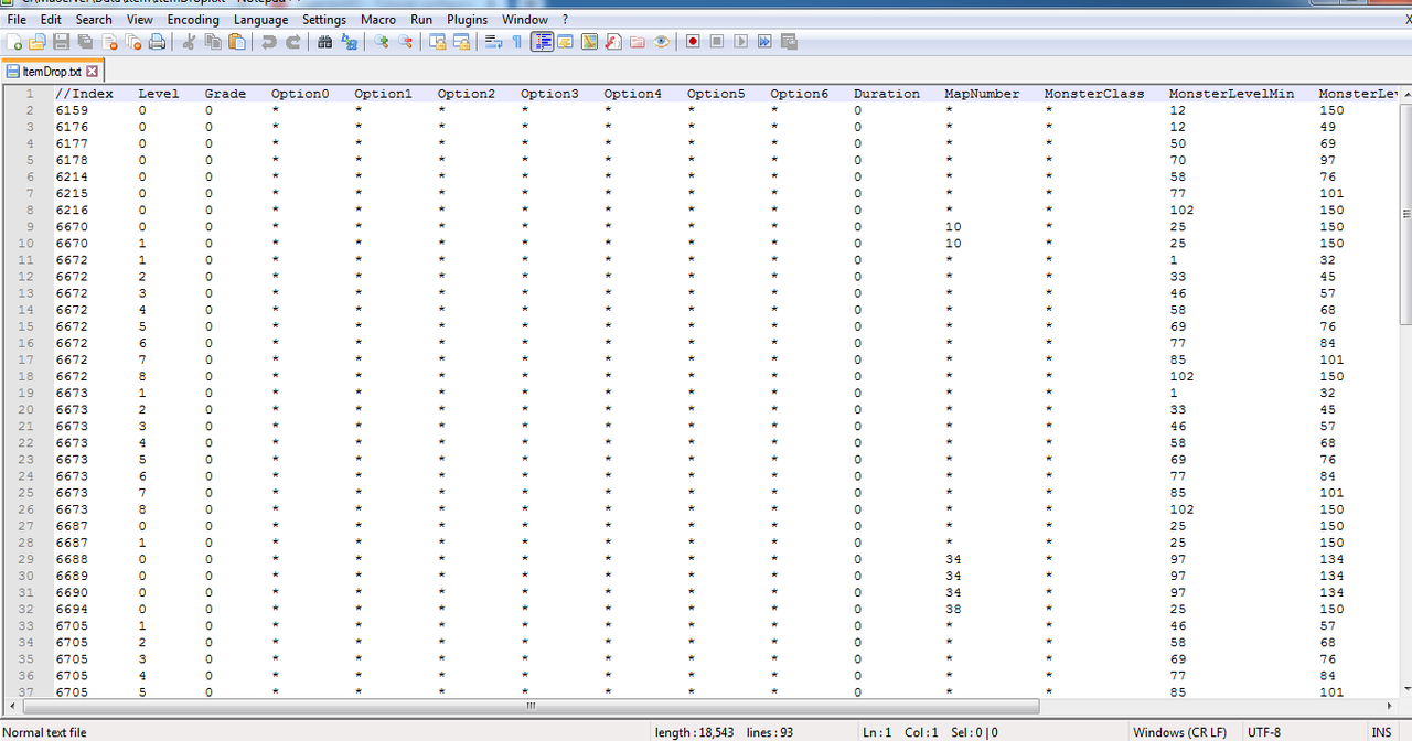 //Index Level Grade Option0 Option1 Option2 Option3 Option4 Option5 Option6 Duration MapNumber MonsterClass MonsterLevelMin MonsterLevelMax DropRate Comment