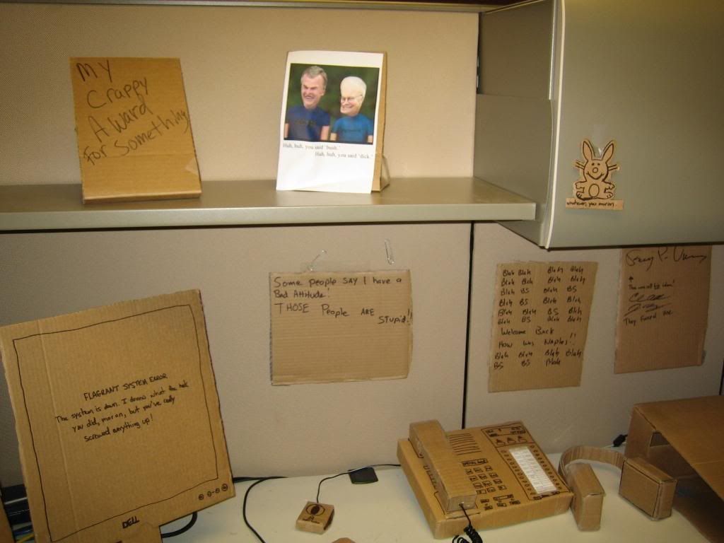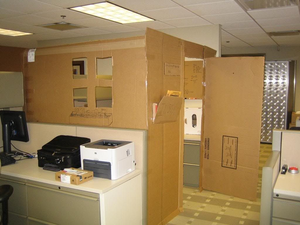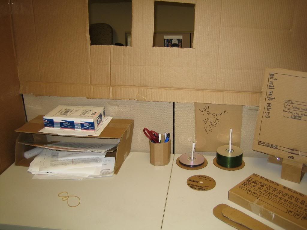 impressive lol, that guy must be a real good friend, the carboard office took a lot of effort, they must really appreciate whoever it is! lol, once in a life time joke to never forget