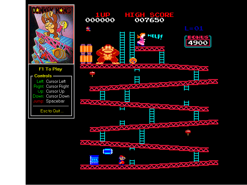 VB Donkey Kong by Splaze. In the beginning, there was Donkey Kong, indisputably THE father of all multi-level platform games. When Donkey Kong was released back in 1981, it was an immediate success! This was as such Nintendo's first blockbuster. Consequently, for historical preservation and a great self-challenge, I decided to clone DK. Game physics are near identical to the original. Title screen & first level of the game fully implemented, 100% playable with sound & music. No joystick support. 808 KB download. Enjoy!