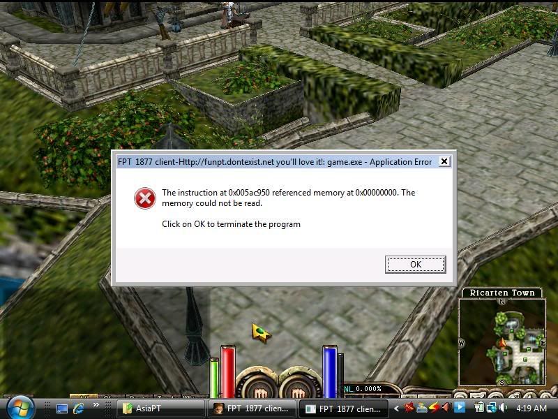The solution is not to make a bollocks of editing your client in the first place. Your client has had data stores relocated in the image to a location that is not given permission to be accessed the way you are using it... Win32 without DEP can't actually enforce that, and at best will flag a warning in the system event log. But if your CPU is capable of hardware DEP (Data Execution Protection) it will shut down any application that is using memory in ways that it is not authorised to do.