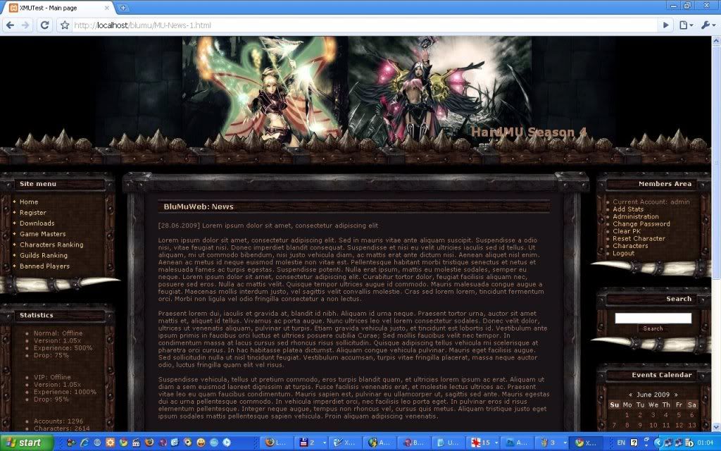 - Options(MD5,Server Name,Contact Mail,Add Stats Switch,Reset Characters Switch,Clear PK Switch)