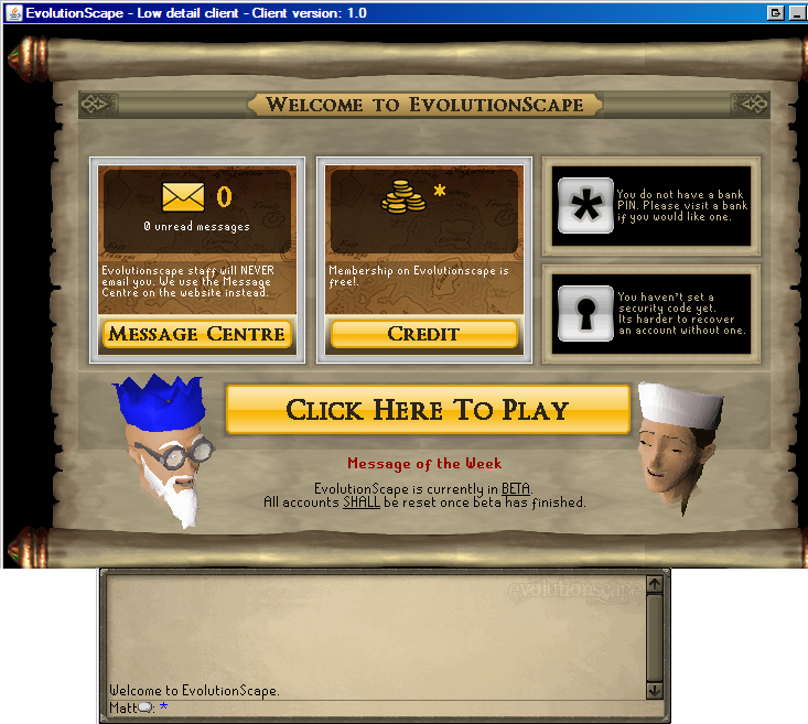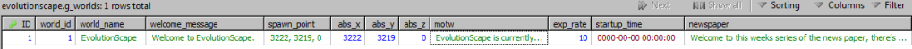 On here I have information to load several different aspects of the server: the ID/Name of the world, the welcome message, message of the week, starting coordinates, experience rate and the newspaper text.