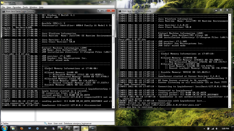 I'm extremely new to private servers, and I managed to get my files together (from aion-java) and make the server with Navicat.