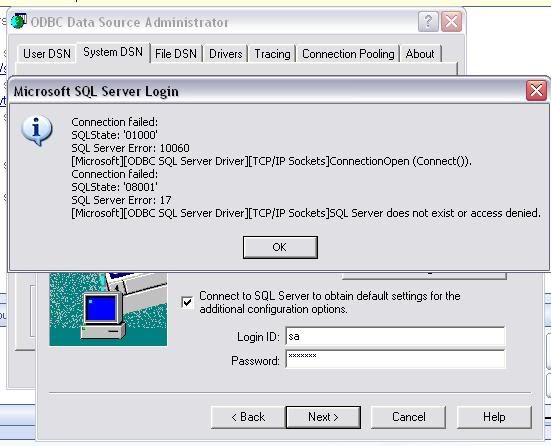 It must connection using Authentication ( SQL authentication using a login ID and Pass ) , the login and pass must be the same as in ur config (