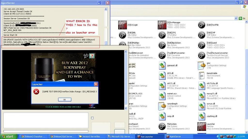 my problem solve about agent field just add sql authen on ODBC to fix it .. but on launcher i just create a shortcut of game.exe to open it ... i have a question why is that the mobs didn't attack only see dmg and also about gmc the item with +40 ups when i add it to char it become's no ups and also it assasin become's brawler ... any solution ? or just share a guide sir or anyone can help or suggest about my problem .... but everything work's fine got a trouble on item can't edit their option because on gmc success in game = wipe out item ... hope somebody can help me ... more power to all .. specially thanks to T.S for sharing this guide ...